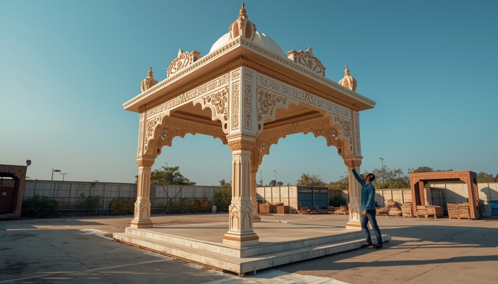 खास बात यह है कि ये मंडप भी पूरी तरह फोल्डेबल हैं। स्टोन फिनिश, गोल्डन कलर या पिंक शेड – आप जिस रंग और डिजाइन में चाहें, यहां वैसा ही मंडप बनकर तैयार हो जाता है।